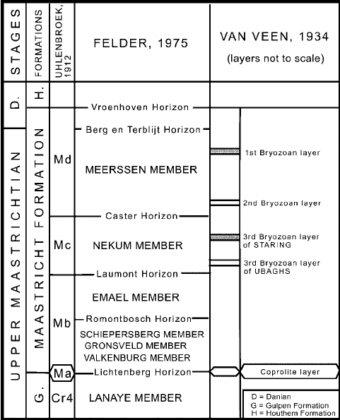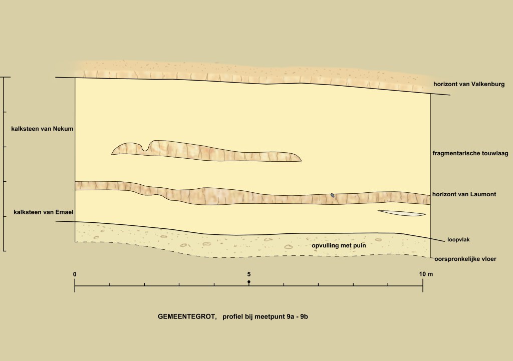 Ze zijn begonnen in het Klauwpijpgebied in het onderste deel van de kalksteen van Nekum. Deze laag gaat van de horizont van Laumont tot aan de horizont van Valkenburg met een hoogte van 3-4 meter. Hierin kunnen gefragmenteerd touwlagen (hardgrounds) in voorkomen. Later zijn ze door de horizont van Laumont gegaan in de kalksteen van Emael terecht gekomen deze is enkel afgegraven worden waardoor het een hoogte van nog geen 2 meter is. Ze moetsen hierdoor wel door een tauwlaag (hardground) heen breken die net onder de horizont van Laumont ligt.